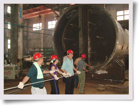 “想生產(chǎn)所想,急生產(chǎn)所急!笔窍鏂|化機所有員工具有的理念。085915項目是用戶要的急的產(chǎn)品,目前該產(chǎn)品筒體、加工件都已完工,就剩下5000余根φ19×7.58米長的管子要串,以及在管子串好后,有1萬余個管頭需要脹管,任務(wù)十分繁重。為按進度盡快完成產(chǎn)品的生產(chǎn),公司要求機關(guān)工作人員分期分批到不銹鋼分廠串管子。昨天,公司辦組織8名工作人員到現(xiàn)場串管子。從上午8點到晚上8點,連續(xù)工作12小時。晚上汽輪機分公司派了20余人接班。圖為串管子現(xiàn)場。(尹雄劍)