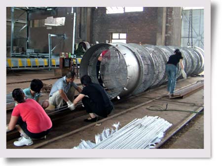 湖南湘東化工機械有限公司為天津渤;び邢挢(zé)任公司天津堿廠制造的煤氣換熱器等8臺設(shè)備,由于焊接技術(shù)要求高,焊接工作量是平常焊接的2.5倍,而且2萬根鋼管要穿,4萬個鋼管口要焊接,時間緊任務(wù)重,于2009年8月14日開始,公司上下齊心協(xié)力搶任務(wù),全體機關(guān)人員分批下車間穿管子,做到本職工作和生產(chǎn)任務(wù)兩不誤。