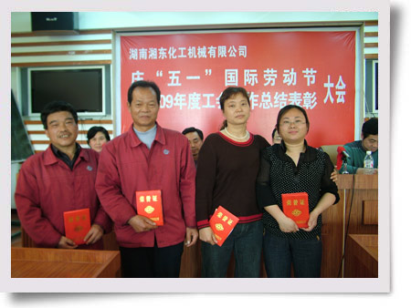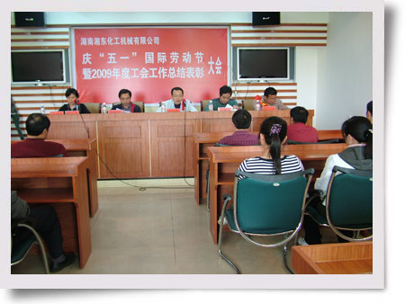 2010年4月29日,湖南湘東化工機械有限公司召開2009年度工會工作總結(jié)大會,熱烈慶祝五一國際勞動節(jié)。