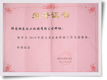 近日,自株洲市科學(xué)技術(shù)協(xié)會(huì)傳來(lái)消息,湖南湘東化工機(jī)械有限公司科協(xié)被評(píng)為2010年度全市企業(yè)科協(xié)工作先進(jìn)集體。(王慧卉)